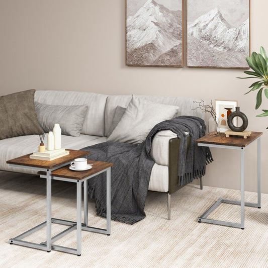 3 Pieces Multifunctional Coffee End Table Set-Rustic Brown