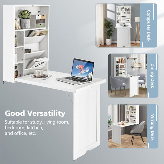 Wall Mounted Fold-Out Convertible Floating Desk Space Saver