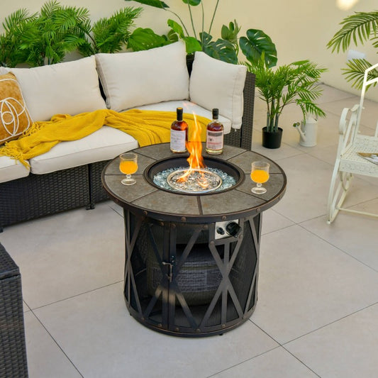 32 Inch 30000BTU Fire Pit Table with Fire Glasses and PVC Cover