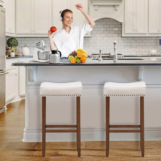 Lot de 2 tabourets de comptoir sans dossier de 29 pouces avec clous à tête en laiton