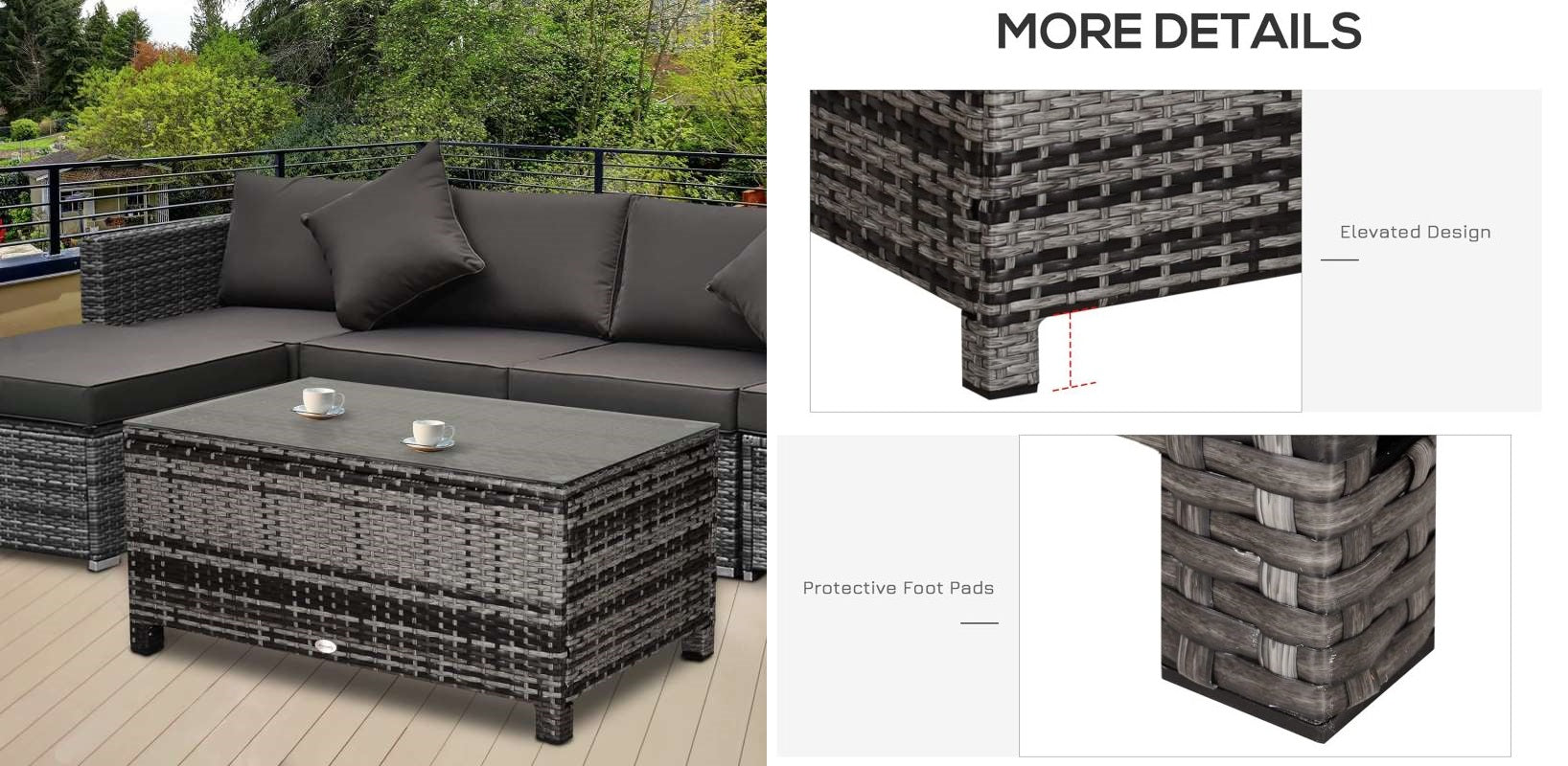 | Matériel | Métal, rotin synthétique, verre trempé |